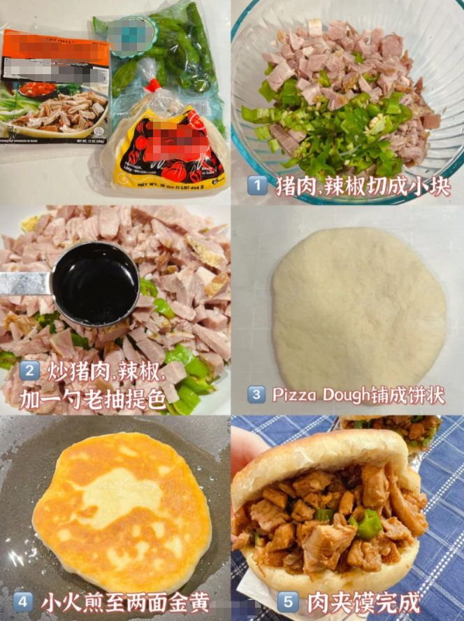 馋一口肉夹馍却做不来白吉馍?没关系,用半发好的披萨饼皮代替,饼皮质地有韧劲,和馍馍有个六七成像吧(不能要求更多了!)。