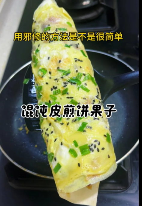 例如想做煎饼馃子,但买不到薄脆?留子们干脆将超市买到的馄饨皮擀成薄片,油炸后代替,就连煎饼馃子的面糊也可以用馄饨皮叠加制成,相当方便。