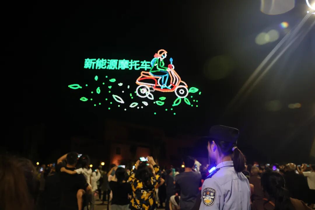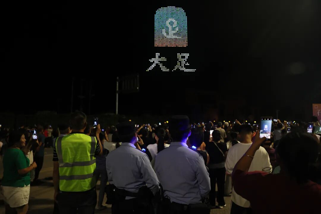 10月1日、2日,大足区香国公园、石刻文创园炫目的无人机烟花秀点亮夜空;两场展演吸引了数以万计的市民游客驻足观赏,现场氛围热烈。