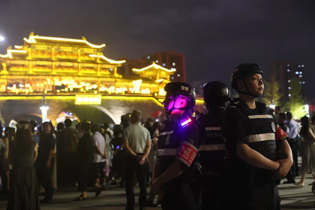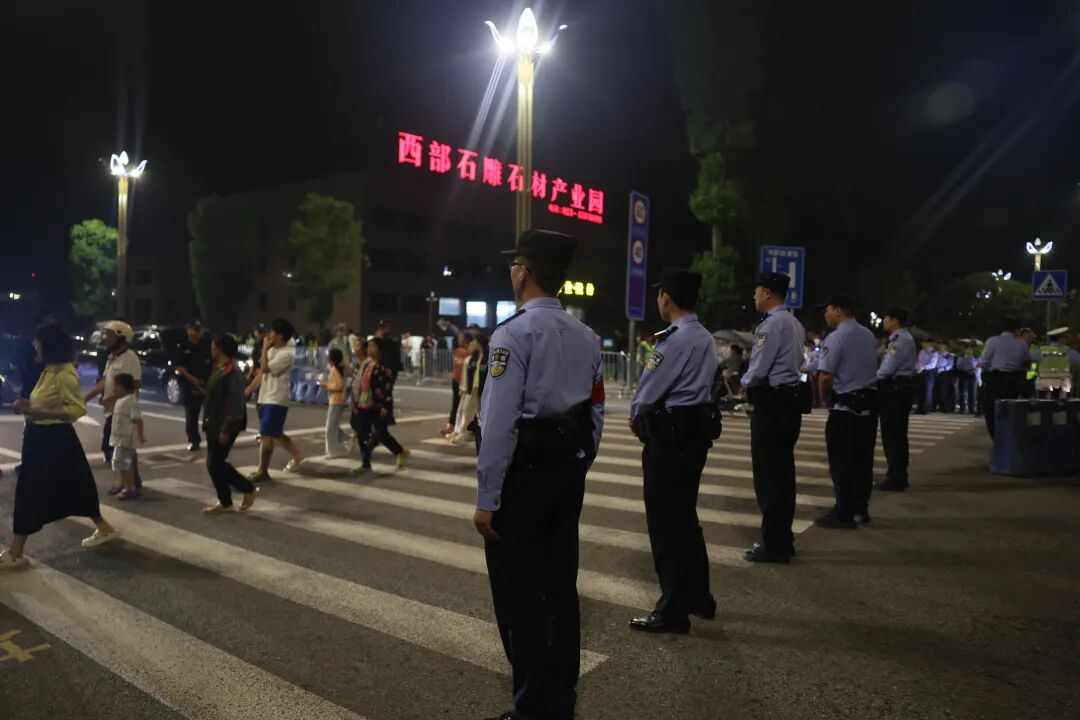 连续两日累计出动警力600余人次,联合安保力量2100余人次、党政力量1300余人次,形成立体化防控体系,通过科技支撑与人力保障相结合的方式守护群众平安。在核心区,特警全程守护,筑起坚固屏障;在道路口,交巡警科学调度、及时分流;在外围圈,参勤警力高效配合,快速响应、果断处置。