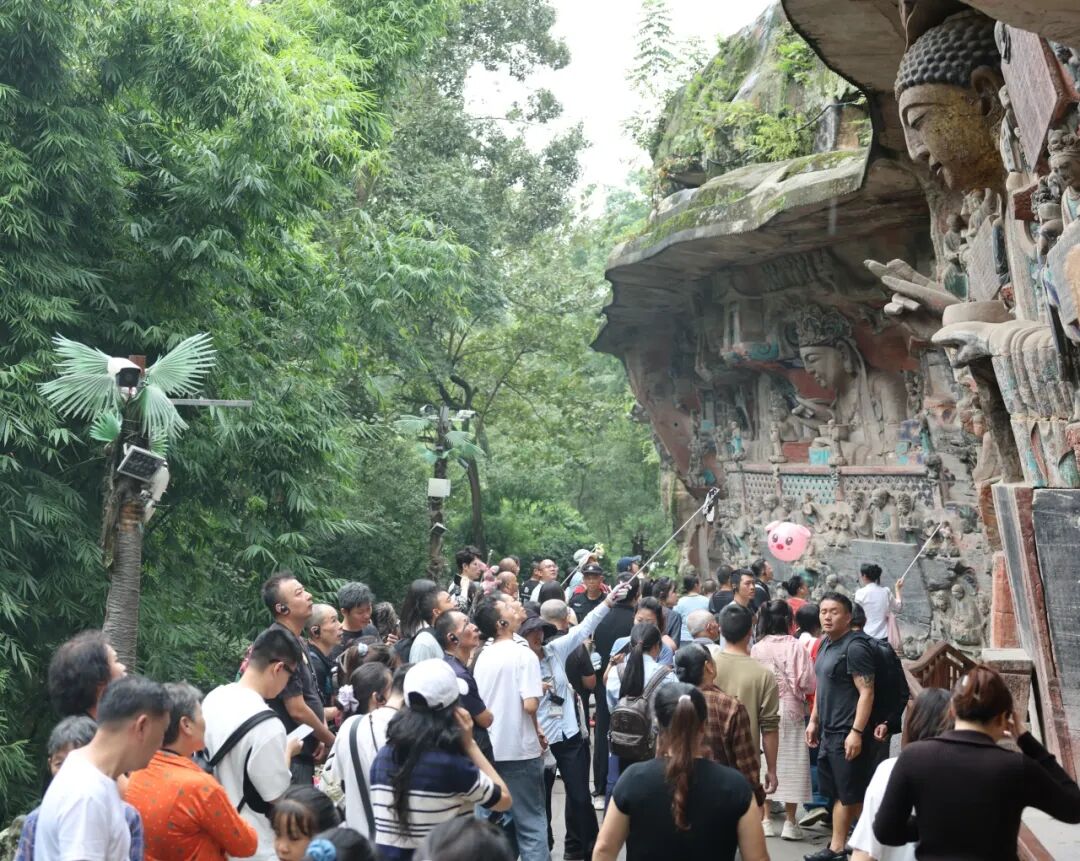 此次国庆假期,大足石刻以其古老的文化底蕴和创新的体验方式,正吸引着越来越多游客前来探访。