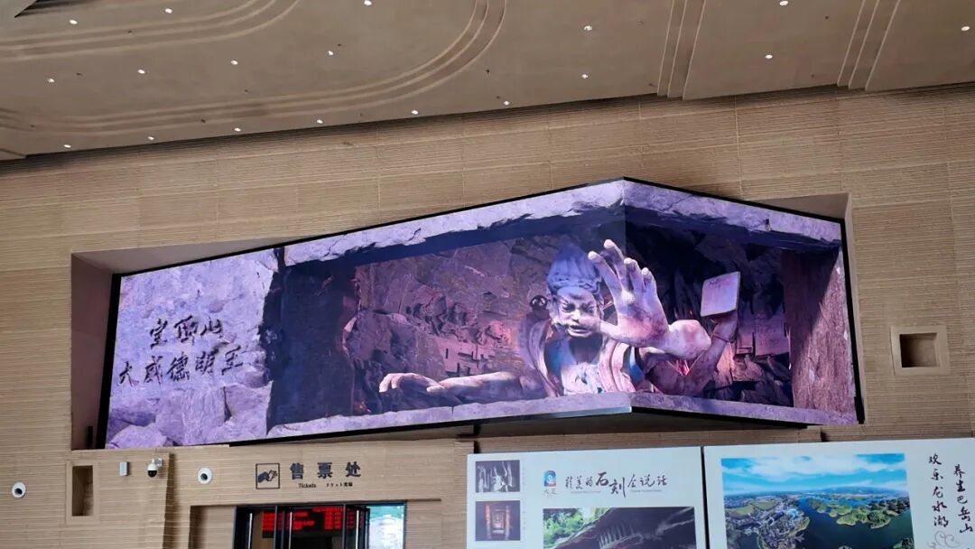 大足石刻宝顶山景区游客中心的屏幕上,大威德明王造像从石墙中 “缓缓浮现”似要破屏而出。这个国庆假期,大足石刻景区科技赋能文化,充分利用现有硬件资源,结合圆觉洞保护工程项目和国产首个3A游戏 “黑神话悟空” 的数字资产,将大威德明王、辨音菩萨等经典石刻造像以全新的数字形态呈现,游客步入景区,就能欣赏到大足石刻系列裸眼3D产品,为游客开辟了体验千年石刻文化的新途径。