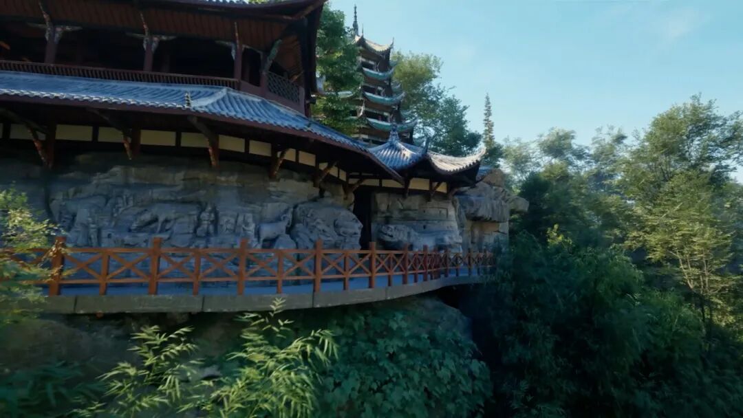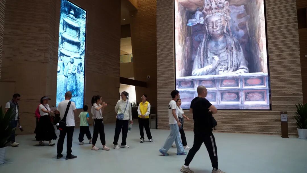 除了3D视觉震撼,在大足石刻景区还能欣赏到8k球幕电影《大足石刻》、体验VR游戏《无面之神》;即便无法亲临现场,线上游客也能通过 “云上大足石刻” 平台纵览景区风光,实现 “云端赏石刻”。