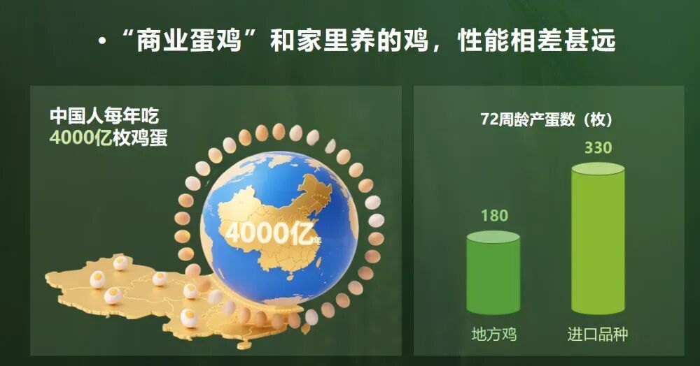 下图的这只毛茸茸的小鸡,叫做“京粉 6 号”,别看它看起来普普通通,其实有着非常特殊的意义——它不仅是我们中国人自主培育的蛋鸡品种,具备中国特色、世界独有的基因优势,更是全球首个实现 700 天产 500 枚蛋的超高产蛋鸡。你可能想不到,就是这只在我们掌上小小的一只鸡,背后藏着一段跨越 20 余年的奋斗史,而早餐盘中这枚非常普通的鸡蛋,正是一枚闪亮的勋章,见证了中国种源自主的破壳之路。今天就让我们从这只小鸡说起,一起回顾这段关乎每个人“吃蛋自由”的中国蛋鸡科技突围史。很多人可能都非常疑惑,农村里很多人都养鸡,为什么还要长期从国外引进“商业蛋鸡”呢?关键在于主要性能相差特别大。家里养的鸡一般是“地方土鸡”,虽然鸡肉香、蛋味浓,但有一个很大的问题是产蛋量极低——一年最多产 180 枚蛋,且受季节影响大。而商业蛋鸡是经科学选育的“专业产蛋选手”,年产蛋量能稳定在 330 枚以上,同时还具备耗料少、抗病性强等优势,能完美适配规模化养殖需求。可以说,没有这些 “高科技鸡”,就没有如今稳定、平价、充足的鸡蛋供应。中国作为全球最大的鸡蛋消费国,每年要消耗近 4000 亿枚鸡蛋,但在 2003 年前后, 80% 以上的商业蛋鸡种源都要依赖进口,产业风险显而易见。而且,当时国内企业引种完全要看国际育种公司脸色,始终“没话语权”,具体表现为 “四不自由”:数量不自由:对方想给多少就给多少,旺季时根本供不上货;