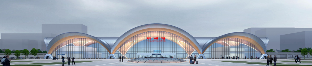 铜梁站位于重庆市铜梁区南部的石鱼镇与庆隆镇交界处,是铜梁区首座高铁站,建筑方案取意“山川成脊、龙乡铜梁”,项目建成后将进一步便捷当地人民群众出行。